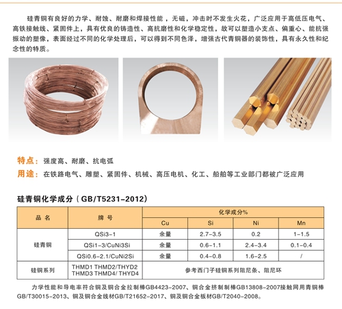 泰锦合金专业生产大型防爆电机用硅铜合金导条、高铁用硅铜、阻尼导条、端环、铜扁线、铜锭的厂家,材料无沙眼无夹杂无气孔,产品采用纯电解铜加工,广泛应用于高压特高压电机、高铁等行业。定制硅青铜导电率到90以上,低电阻率高强度,广泛应用于大电机阻尼条。
